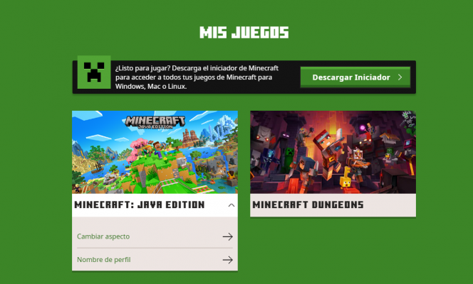 1. Cambiamos de nick desde la página oficial de minecraft (https://www.minecraft.net/es-es). Iniciamos sesión con la cuenta que nos interesa.